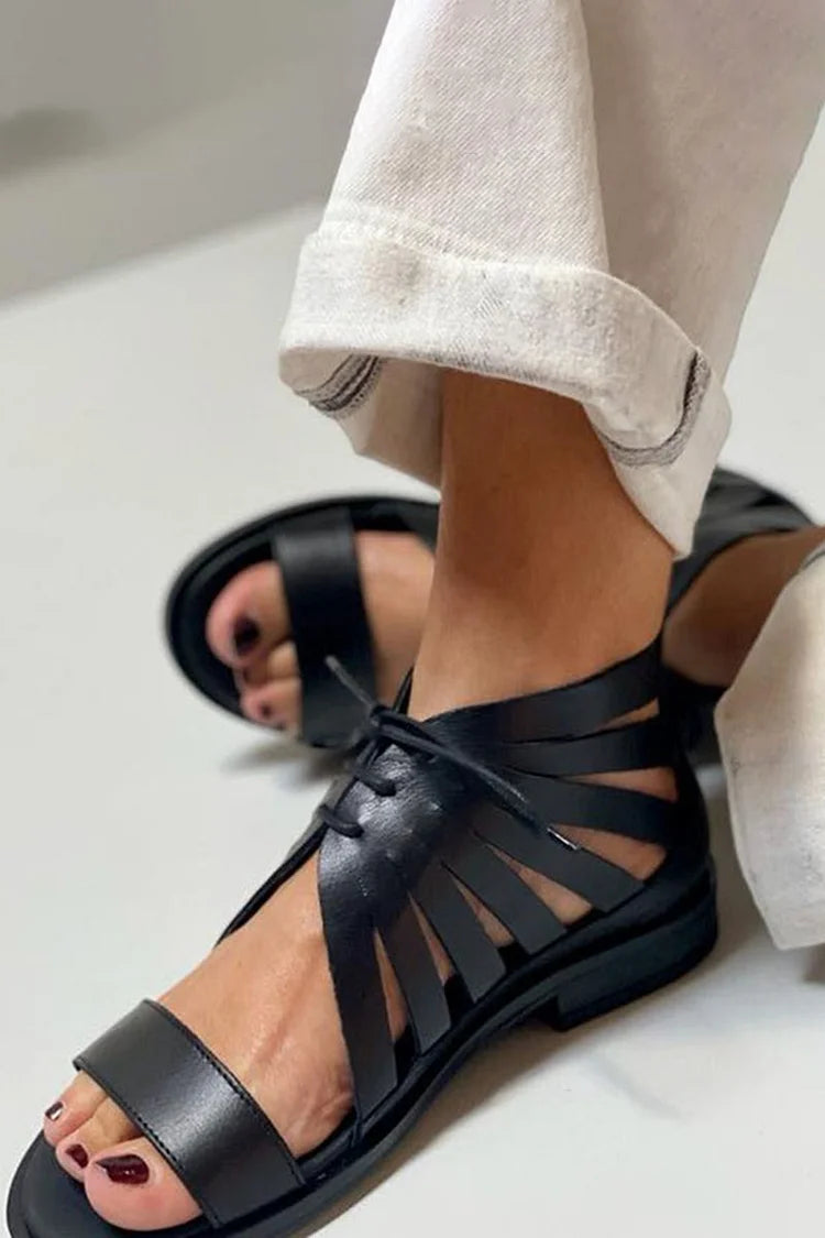 Schwarze einfarbige Sandalen mit runder Ausschnittspitze
